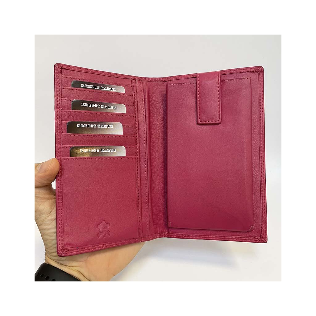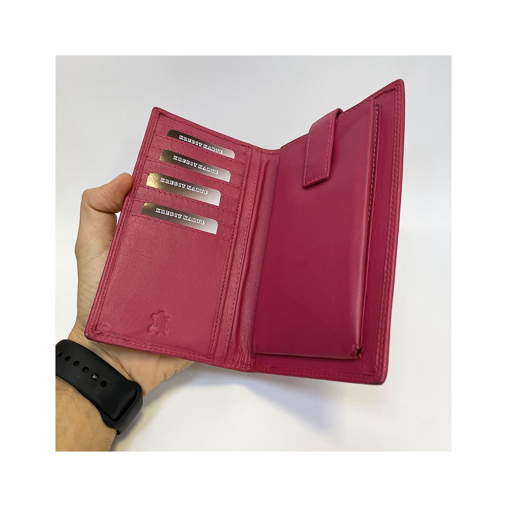 Elegantní dámská peněženka z červené pravé kůže s praktickým uspořádáním a možností doplnění o váš text, monogram nebo věnování.