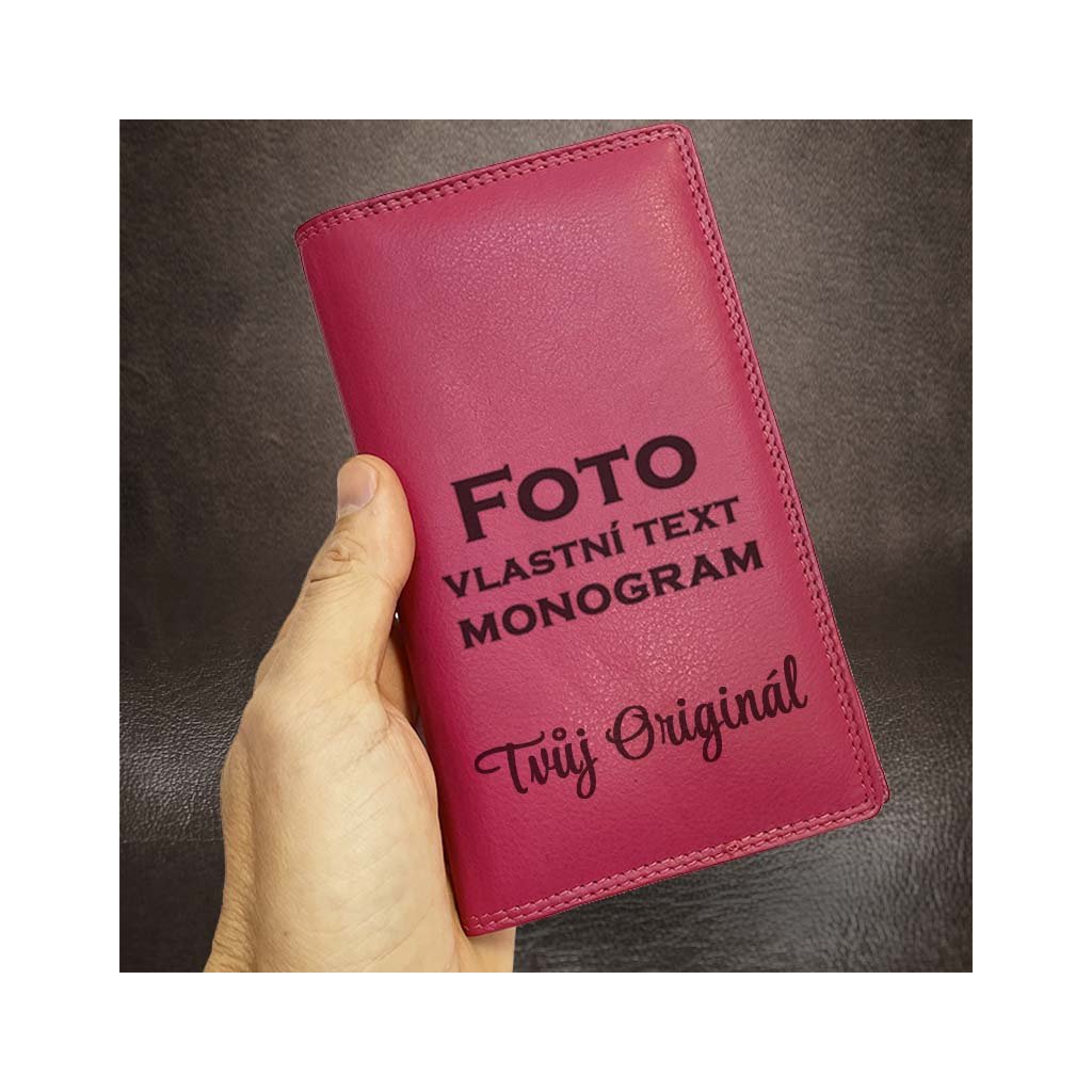 Růžový kožený obal, pouzdro, peněženka TILLBERG LEATHER s monogramem, vlastním textem nebo fotkou + prémiové dárkové balení BE Original