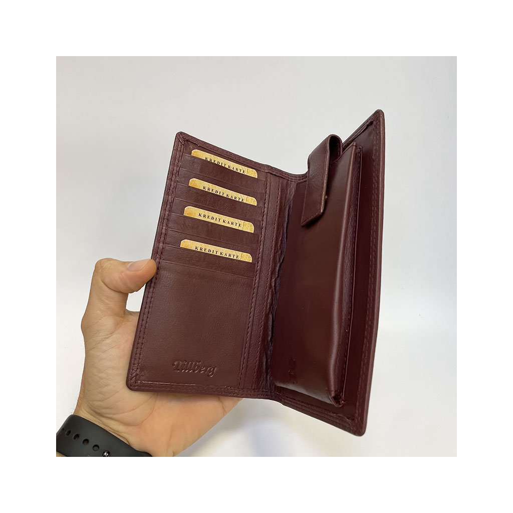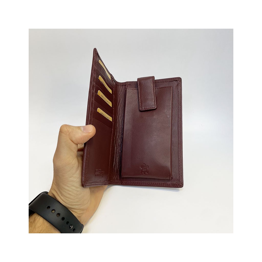 Stylové kožené pouzdro ve vínové barvě je ideální jako kompaktní peněženka, obal na mobil nebo organizér na platební karty a hotovost. Díky své velikosti a praktičnosti se skvěle hodí na každodenní nošení i na cesty.