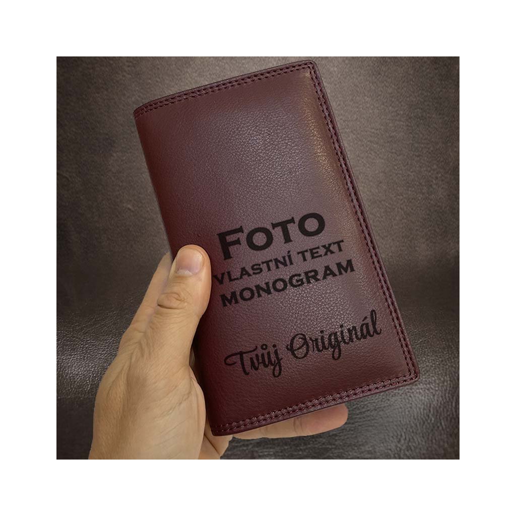 Vínový kožený obal, pouzdro, peněženka TILLBERG LEATHER s monogramem, vlastním textem nebo fotkou + prémiové dárkové balení BE Original