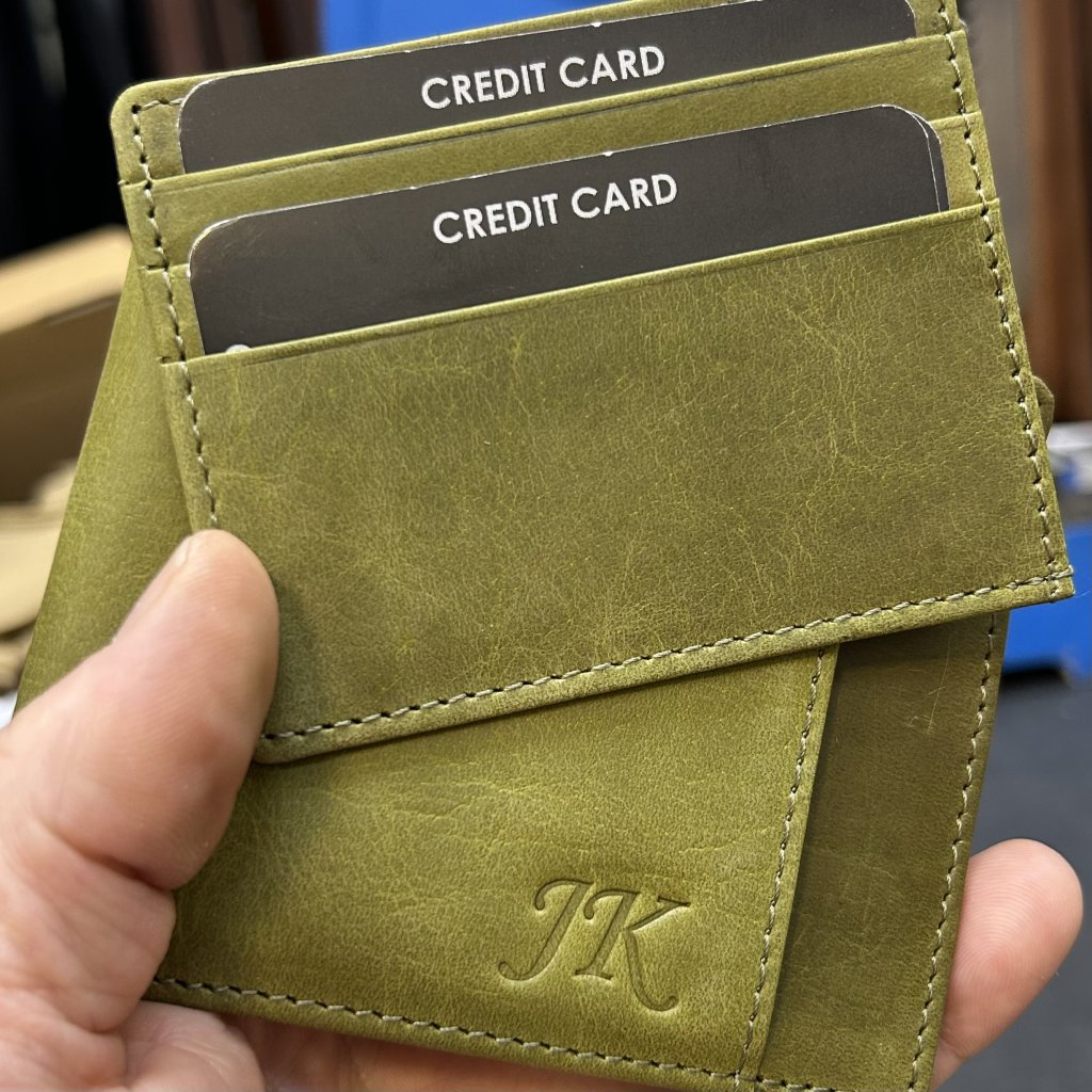Zelená SLIM 2v1 kožená peněženka BEORIGINAL Leather s monogramem (ražba) + Akce - zlatá mince Pro štěstí ZDARMA