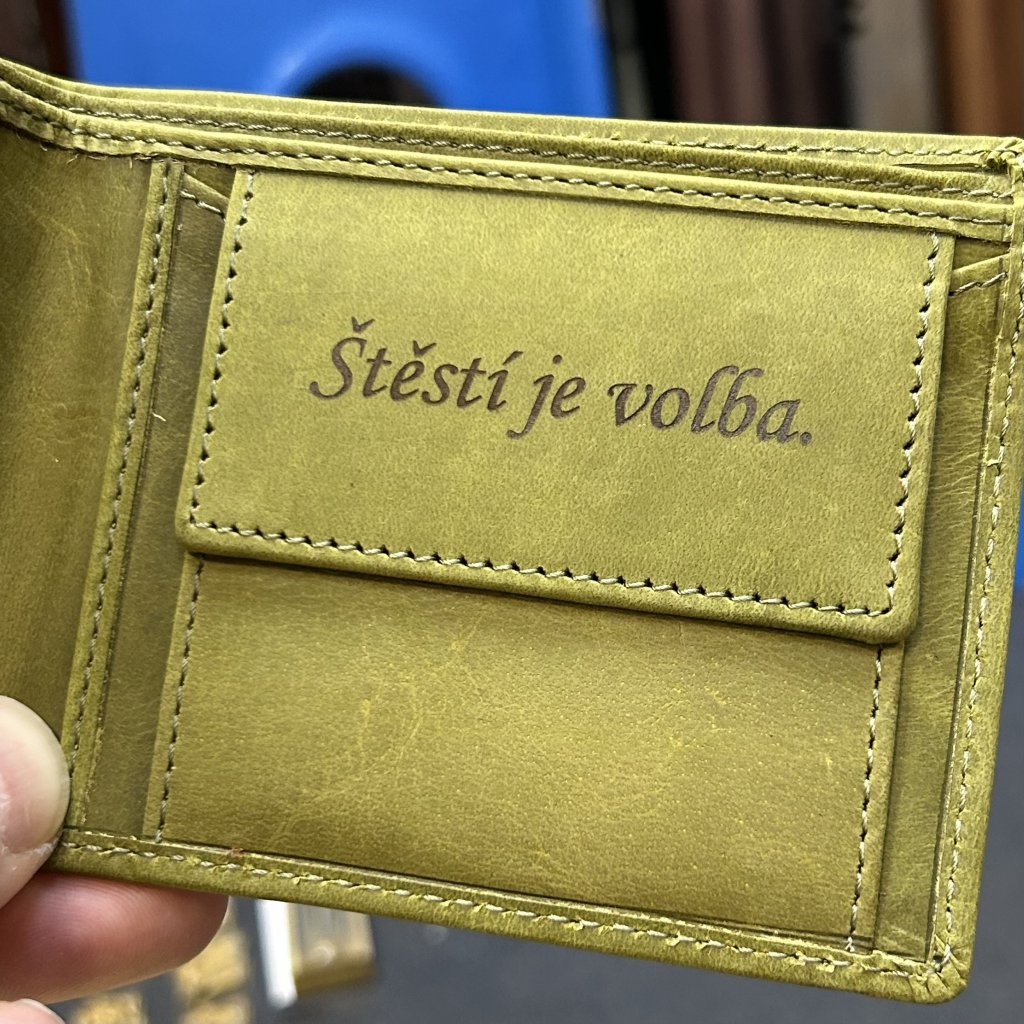 Luxusní pánská kožená peněženka na výšku bez zapínání s možností laserového gravírování textu, podpisu nebo fotografie. Originální doplněk i osobní dárek s trvalou hodnotou.