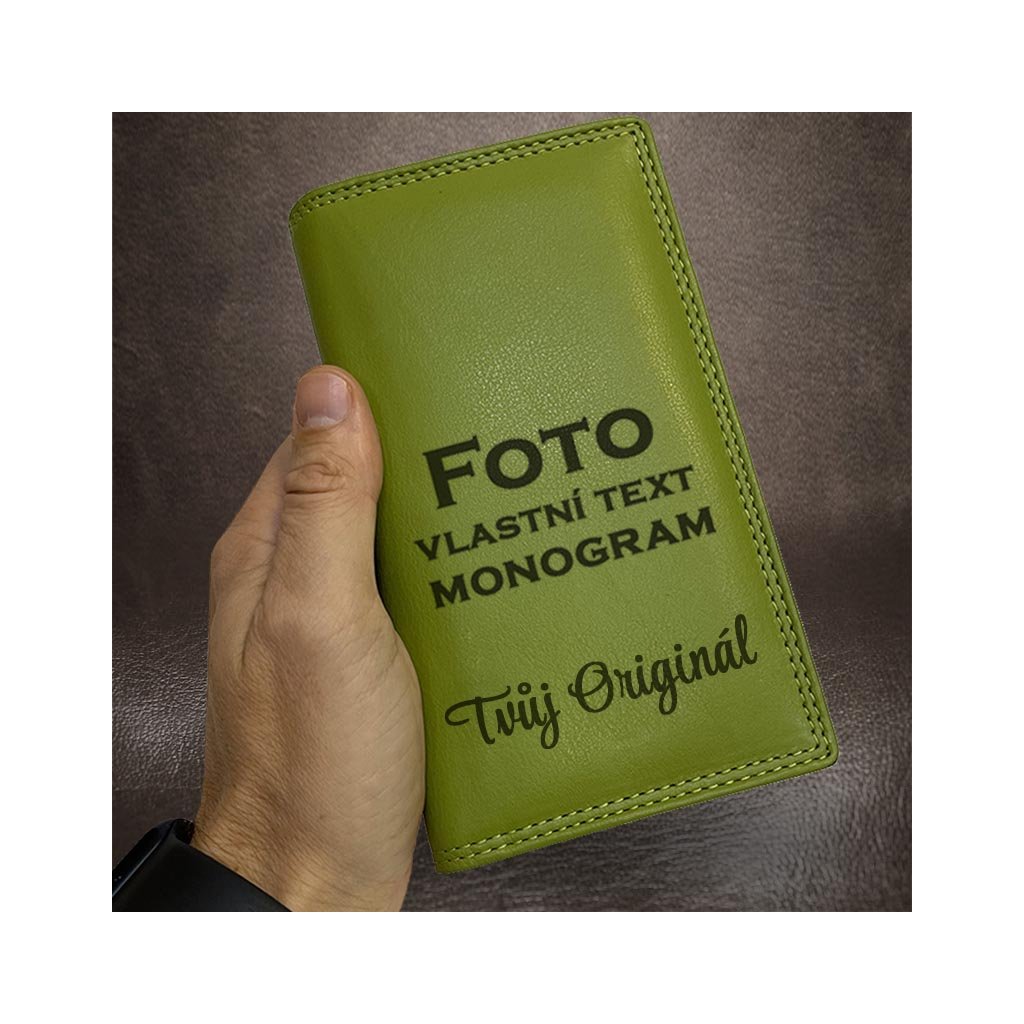 Zelený kožený obal, pouzdro, peněženka TILLBERG LEATHER s monogramem, vlastním textem nebo fotkou + prémiové dárkové balení BE Original